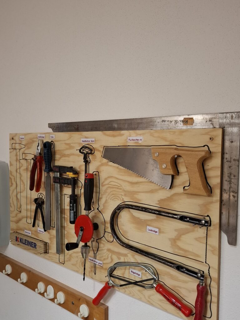 Mit viel Geduld und tollen Übungen konnten die Kinder selbst ausprobieren, wie man Nägel richtig ins Holz schlägt und mit Werkzeug umgeht. Ein echtes Hightlight war das großartige Nagelbrett, an dem die Kinder mit Begeisterung gearbeitet haben!